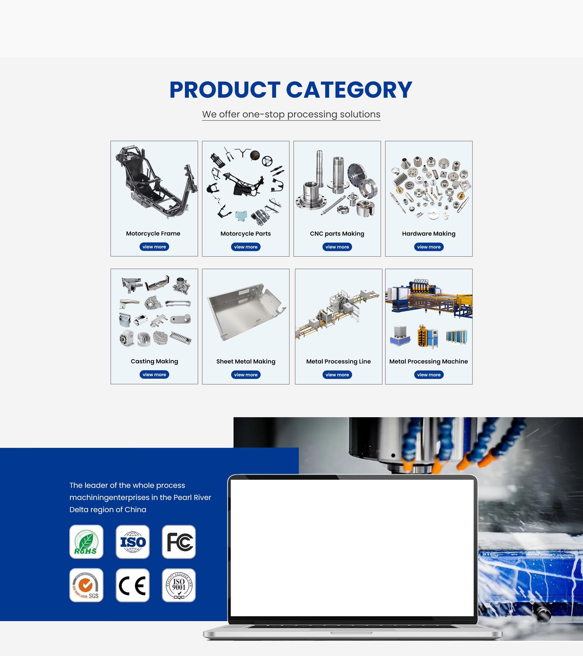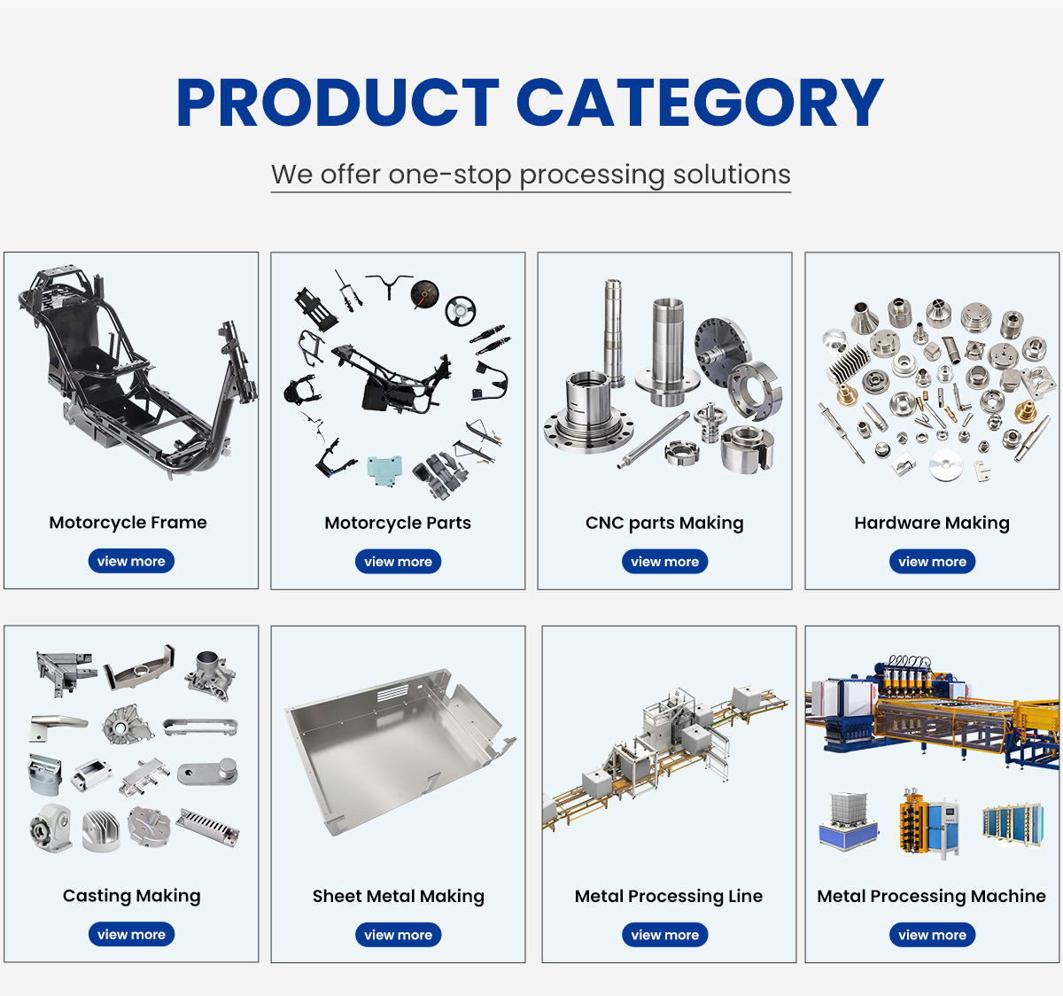 المنتجات الرئيسيةمعالجة الصفائح المعدنية ، خدمة عملية التصنيع باستخدام الحاسب الآلي ، دراجة نارية كهربائية ، إطار دراجة نارية ، ملحقات دراجة نارية